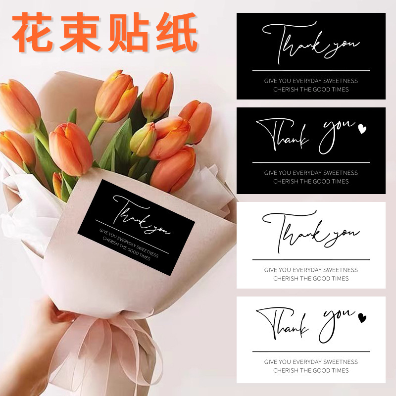 现货批发简约感谢贴纸小花束长方形封口贴鲜花装饰标签自粘不干胶