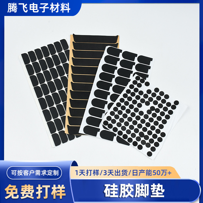 工厂直供硅胶垫片黑色背胶自粘脚垫防滑减震硅胶脚垫密封硅胶垫片