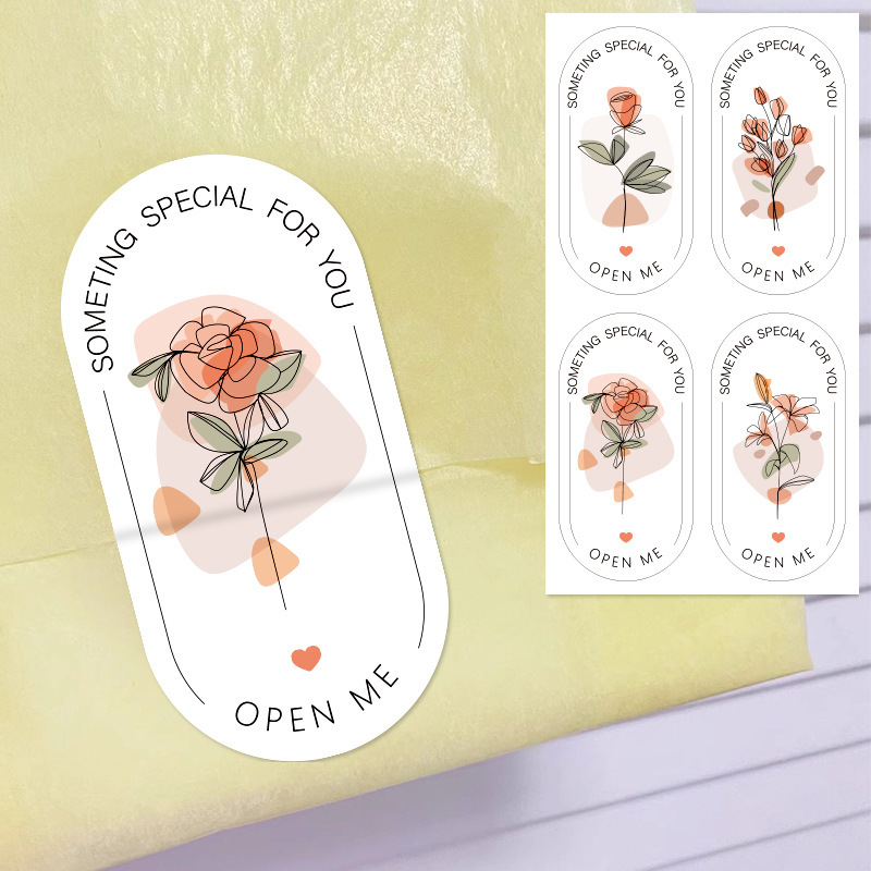 100贴/包花卉贴纸椭圆封口贴礼盒装饰标签贴打包密封贴异形封口贴