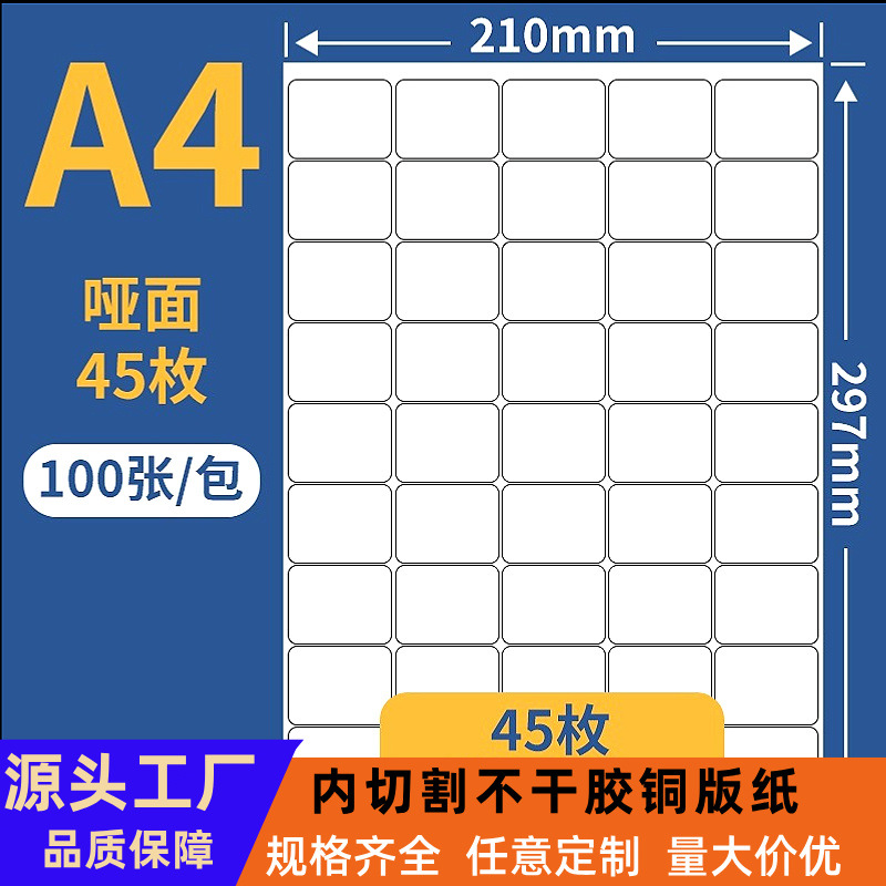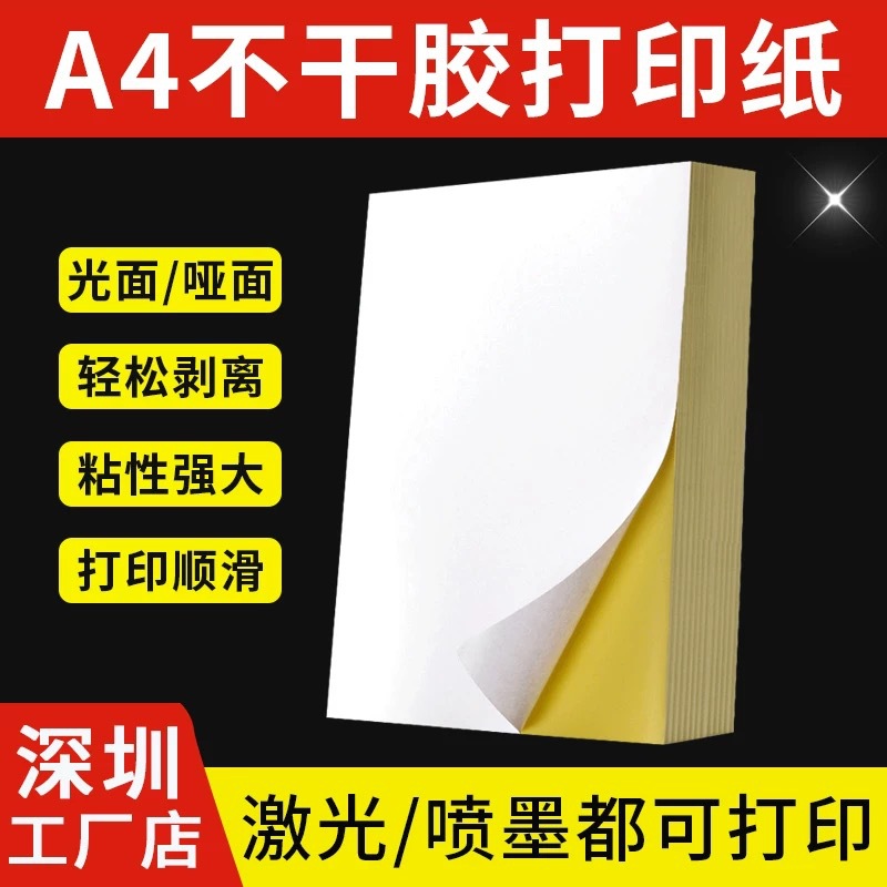 A4铜版纸不干胶标签贴哑面喷墨机打印纸光面激光纸定制内切割尺寸
