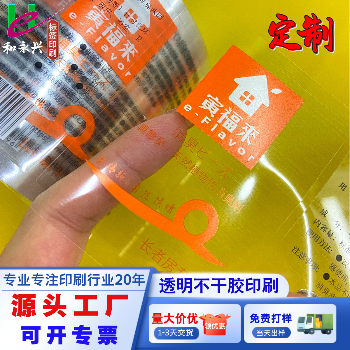定做高透明不干胶标签贴消臭剂产品说明定制印刷双透明底纸不干胶