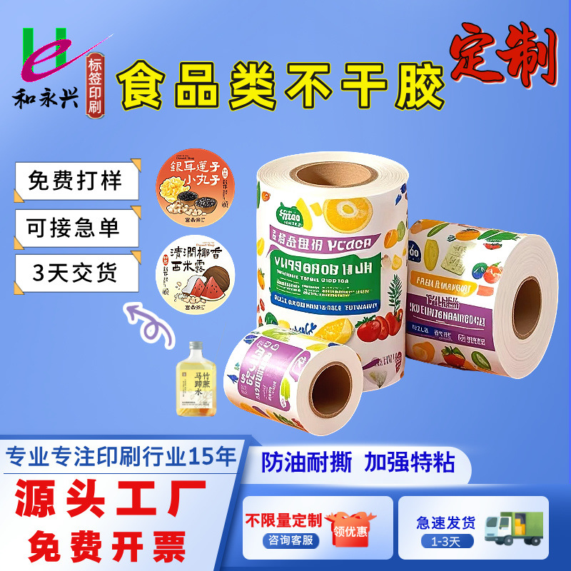 工厂定制食品不干胶卷筒跨境生鲜零食贴纸食品标签纸冷冻链超粘