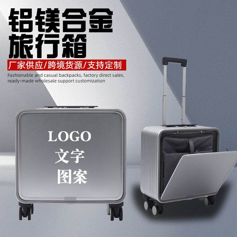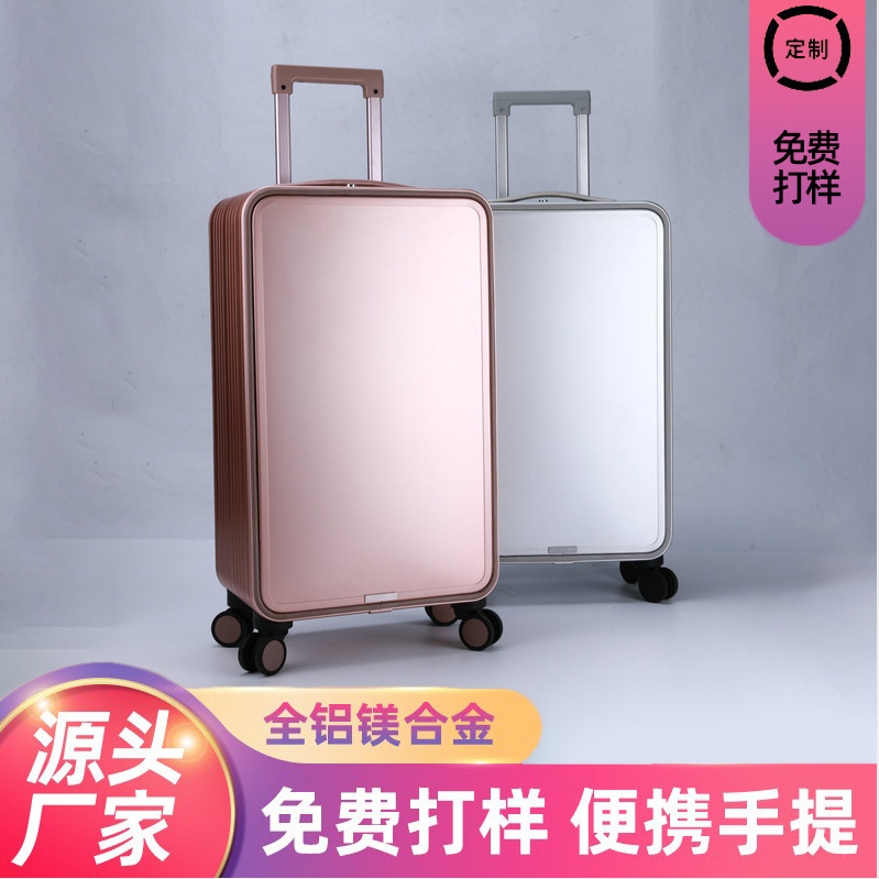20寸前开盖全铝镁合金行李箱万向轮拉杆箱前置开口男女旅行登机箱