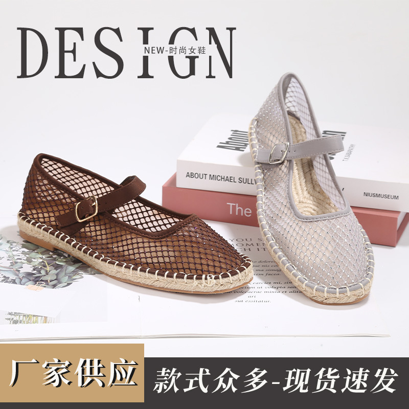 厂家供应一字扣女单鞋春季新款平底鞋圆头网眼镂空舒适平底凉鞋