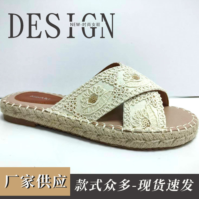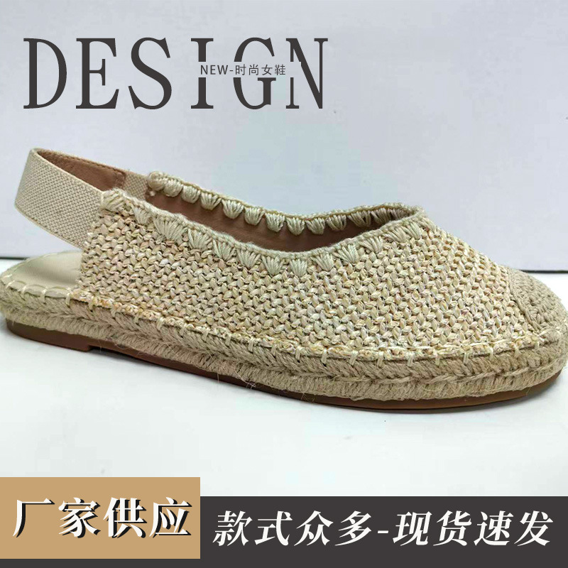厂家供应透气软底编织草编布鞋懒人一脚蹬渔夫鞋男女日常休闲鞋子