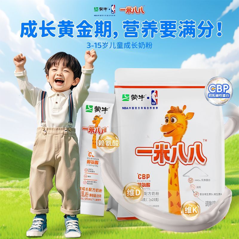 蒙牛一米八八儿童奶粉成长奶粉助力3-15岁骨骼发育学生奶粉青少年