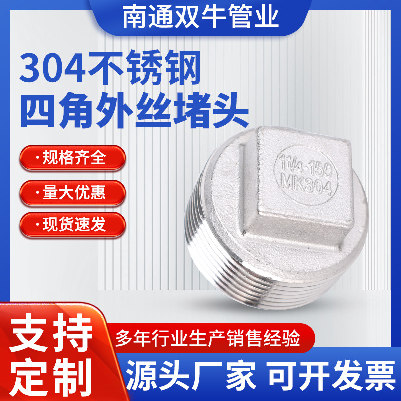 304不锈钢外丝堵头 外螺纹四角头塞头闷头堵板内接水暖配件