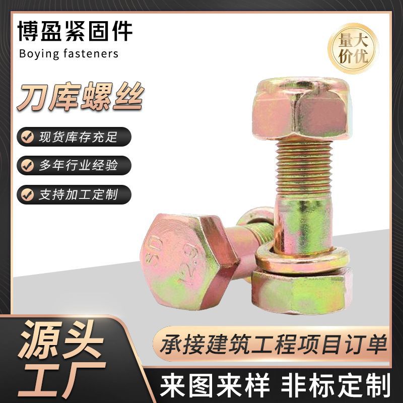 镀彩锌刀库螺栓旋耕机刀片高强度螺栓自锁螺丝碳钢半螺纹六角螺栓