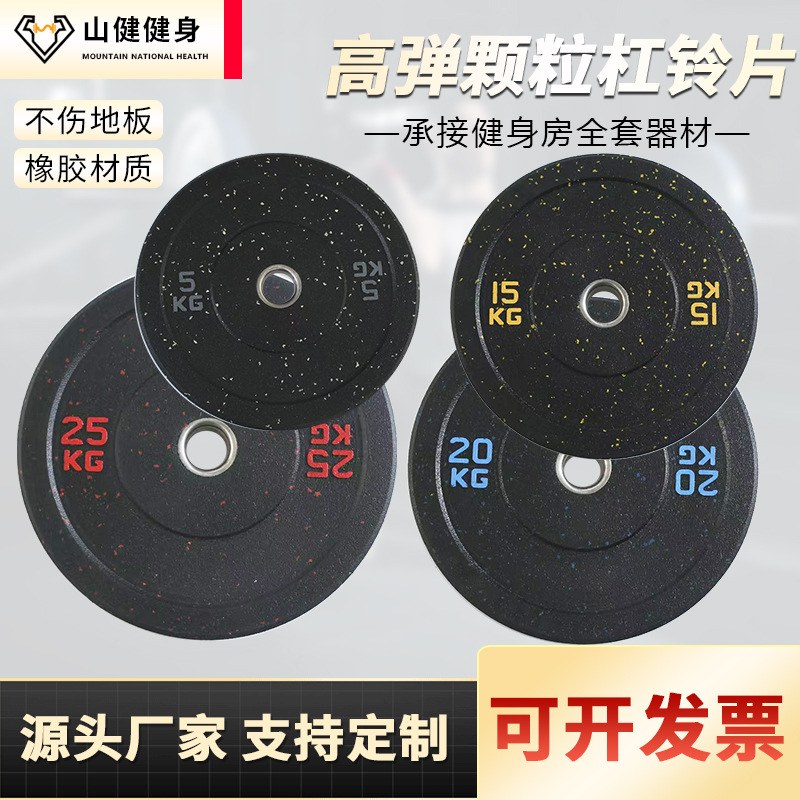 杠铃片高弹颗粒铸铁健身臀推臀桥健身房家用全胶片高弹颗粒杠铃片