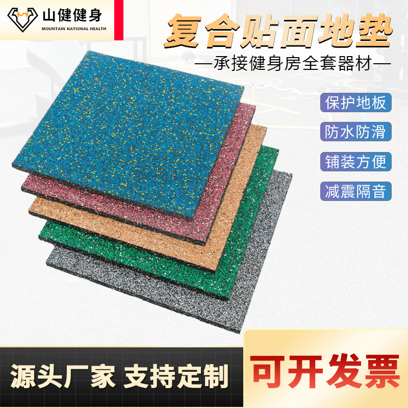 健身房橡胶地垫静音防滑贴面力量区用功能性地垫隔音家用复合地垫