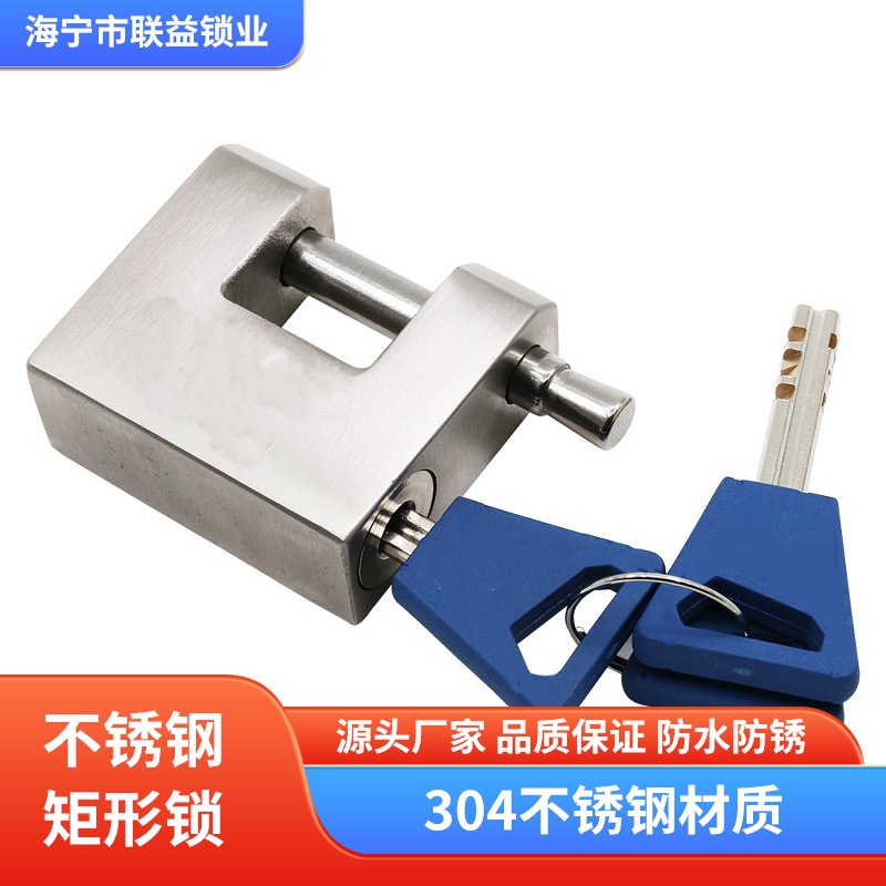 高品质80mm不锈钢矩形锁304不锈钢防水防锈防剪切仓库集装箱挂锁