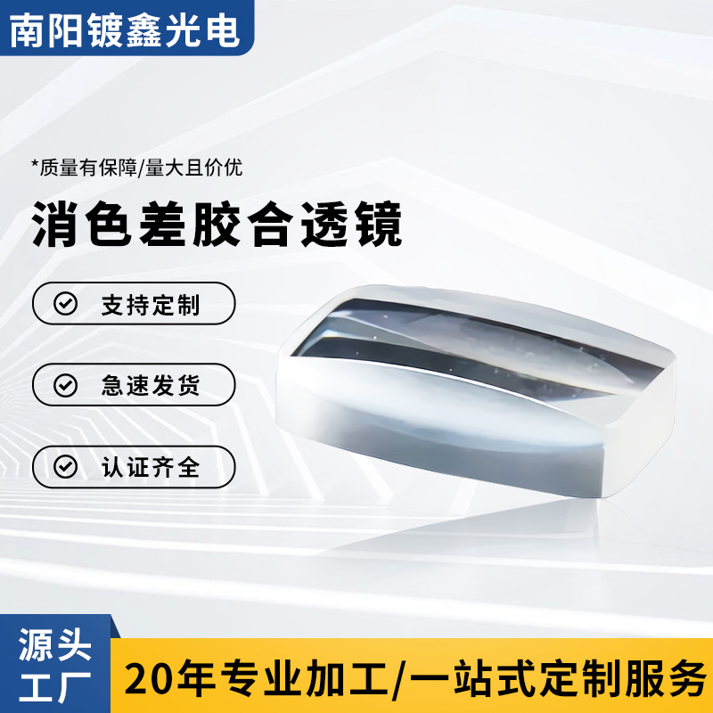 镀鑫光电光学玻璃凹凸消色差胶合透镜物镜镜片三棱镜光学透镜厂家