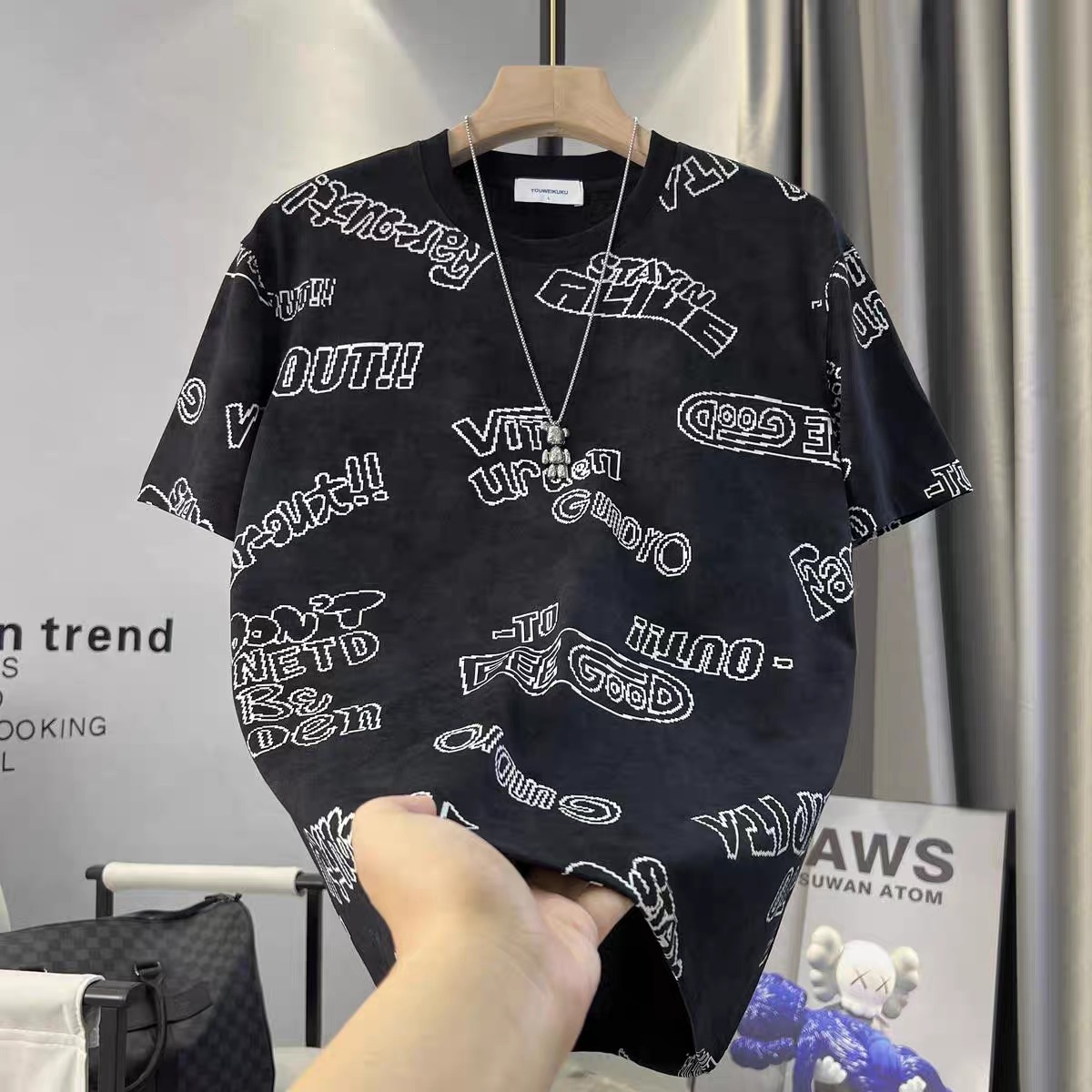 跨境潮流新款夏季男士短袖t恤时尚休闲百搭数码印花帅气简约上衣