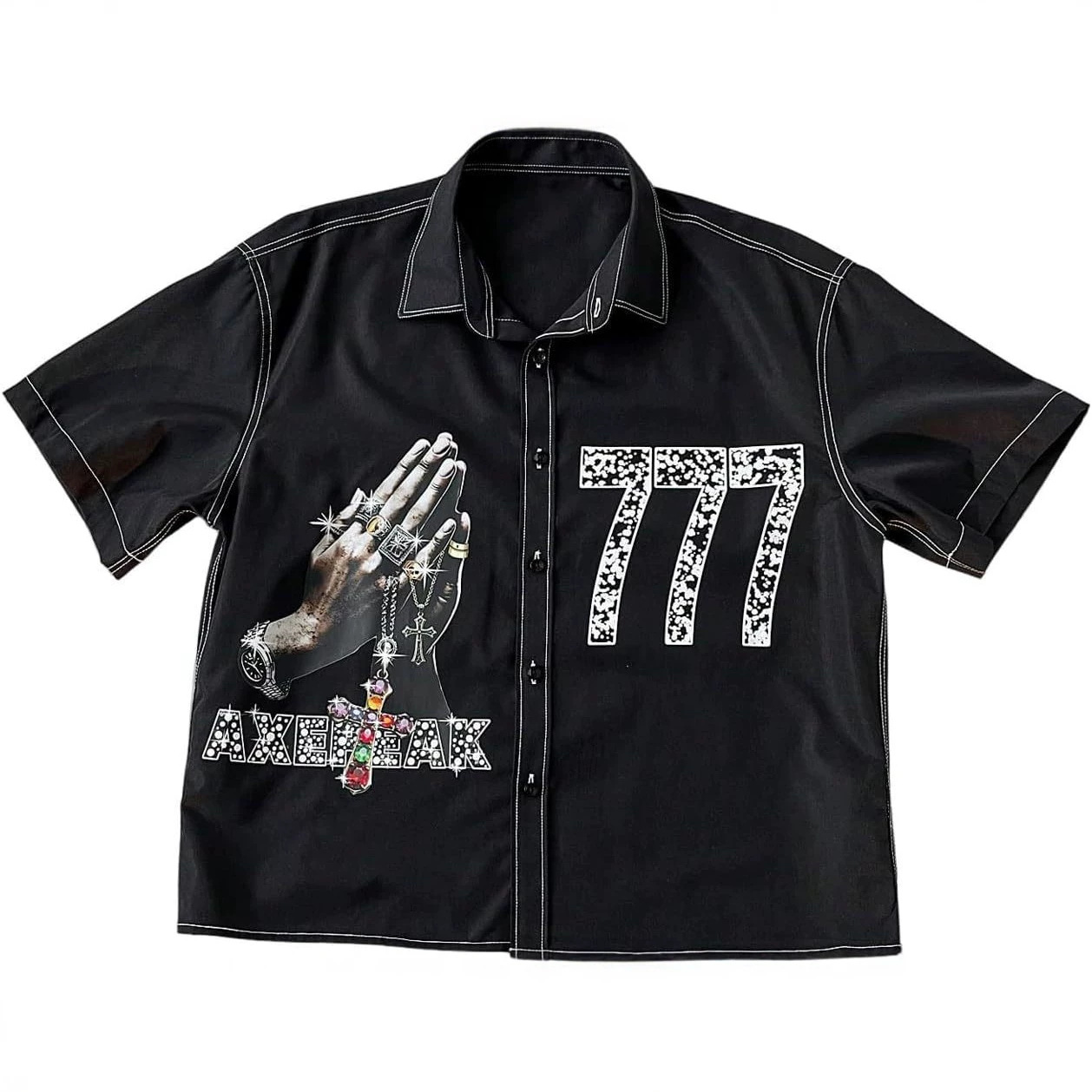 跨境爆款幸运数字衬衫男女夏季透气宽松美式复古嘻哈短袖潮牌上衣