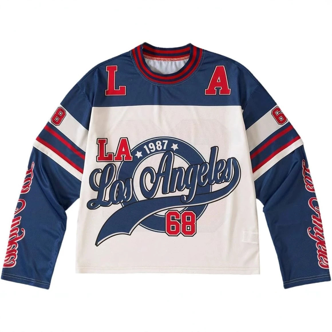 春秋新款男式运动衫Y2k数字字母图案长袖T恤街头潮流休闲百搭上衣