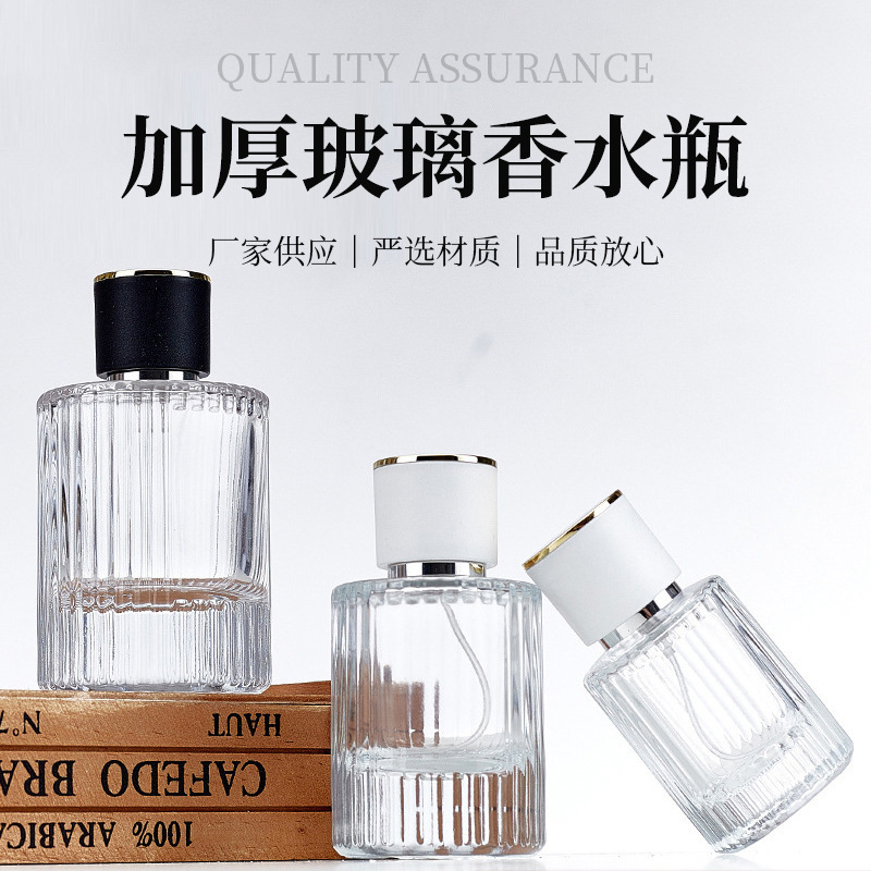 现货圆柱化妆品分装瓶50ml竖条纹化妆水喷雾瓶护肤品香水瓶玻璃瓶