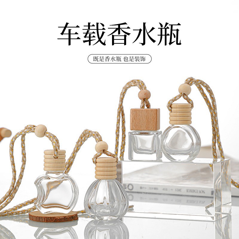 高端玻璃车载香薰带挂绳车内扩香挂件木质盖香水分装空瓶香氛