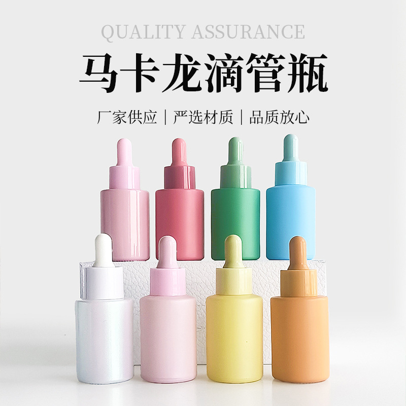 定制马卡龙滴管瓶精油瓶精华液瓶彩色玻璃化妆品分装玻璃空瓶批发