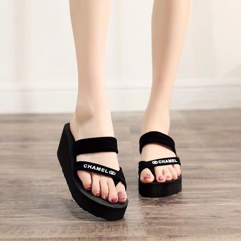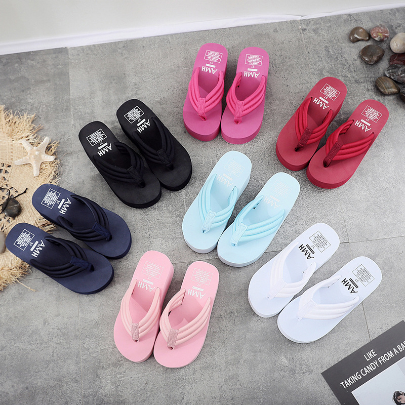跨境夏季女式凉鞋外穿时尚大码坡跟人字拖防滑休闲厚底夹脚沙滩鞋