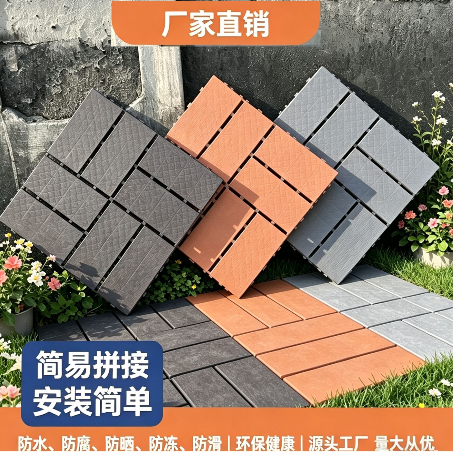 塑料地板户外露台庭院地面翻新室内改造简单拼接地面装修塑木地板