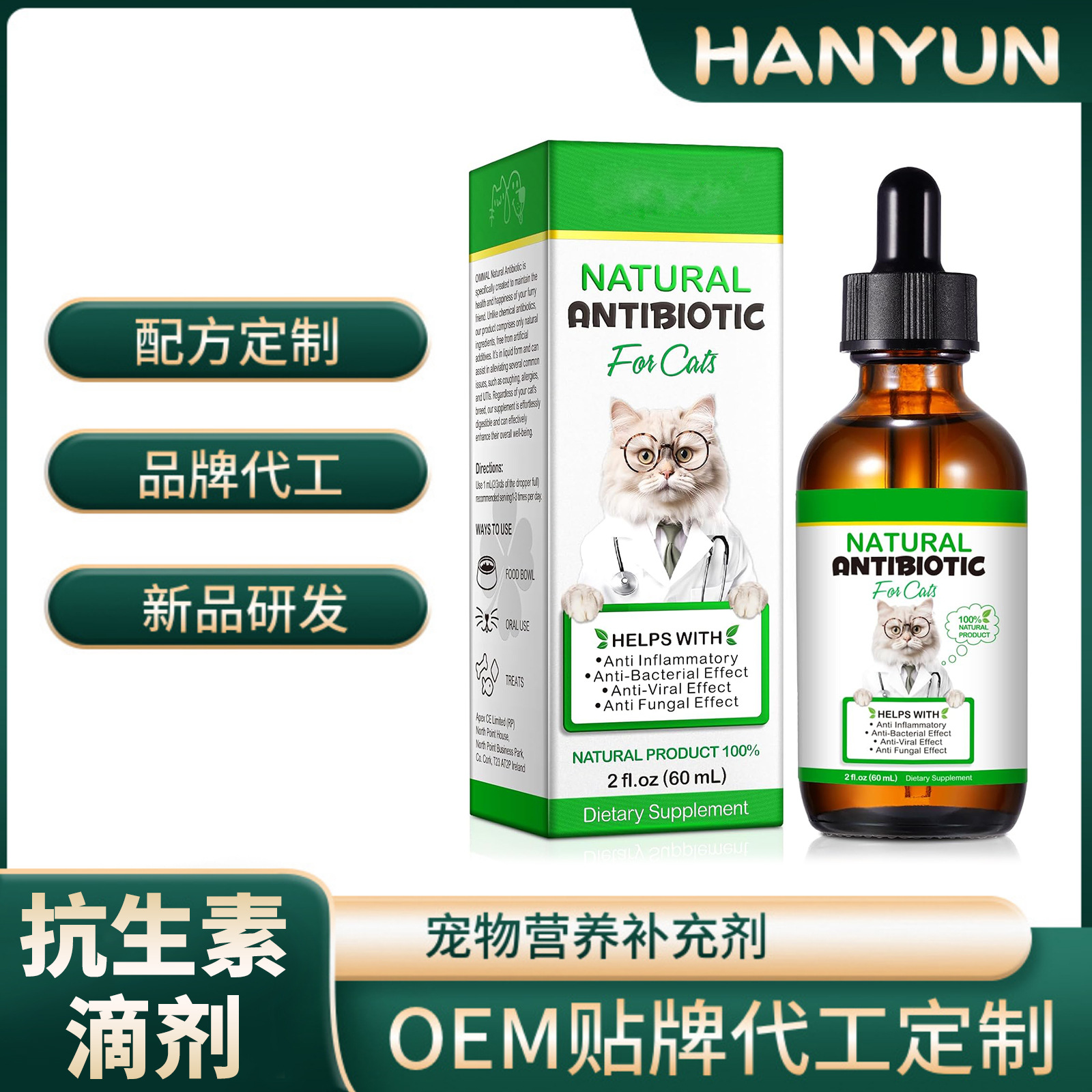 跨境专供猫抗生素滴剂宠物营养膳食补充剂骨关节健康保健品批发