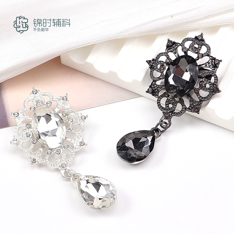 热销水滴花盘吊坠镶钻胸针DIY服饰小众百搭服装辅料配饰胸花