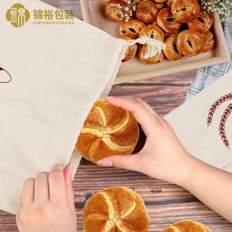 工厂束口面包袋可重复使用环保亚麻材质跨境收纳热卖
