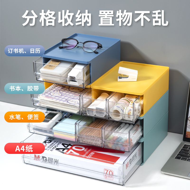 桌面塑料抽屉文具置物架办公室可抽拉文件收纳盒A4纸笔分格收纳盒