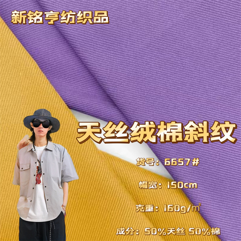 天丝绒棉混纺交织150g骑兵斜布料 春夏女装套装裙子男装衬衫面料