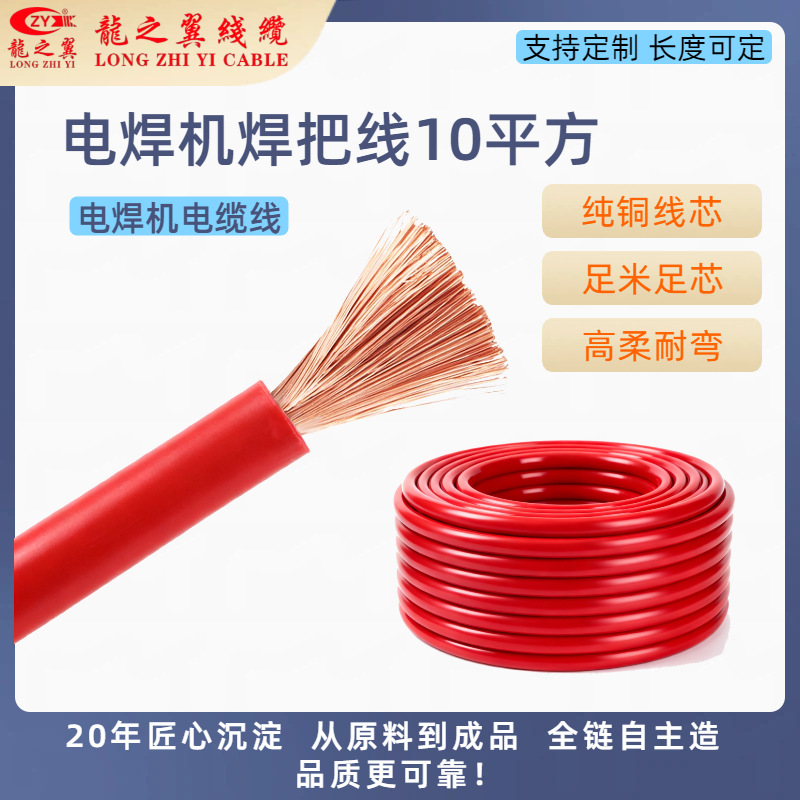 龙之翼纯铜电焊机焊把线RV 6-10平方无氧铜耐磨柔软阻燃RVV电缆线