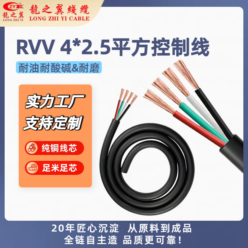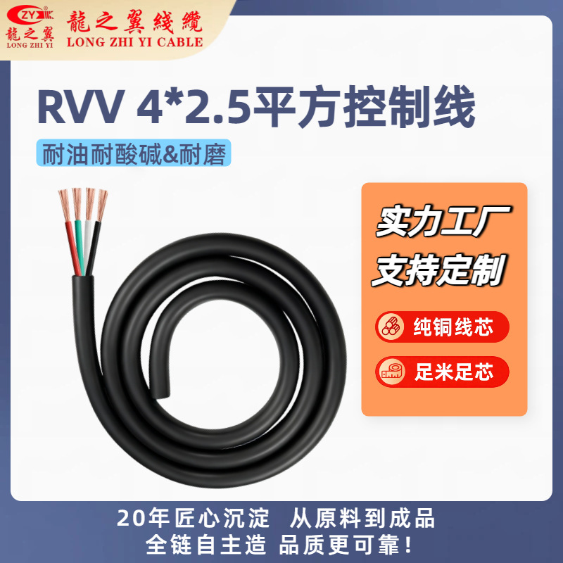 龙之翼RVV4芯2.点5平方电源线耐油耐磨耐酸碱高柔工业控制电缆线
