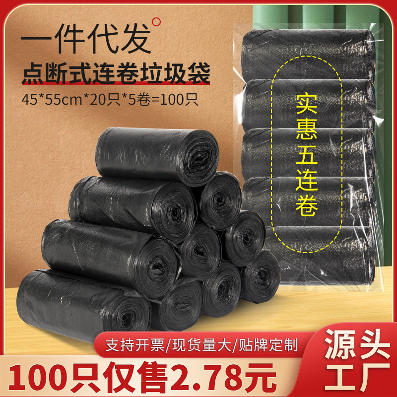 家居一次性黑色大号垃圾袋断点卷式垃圾袋易撕耐用加厚垃圾袋批发