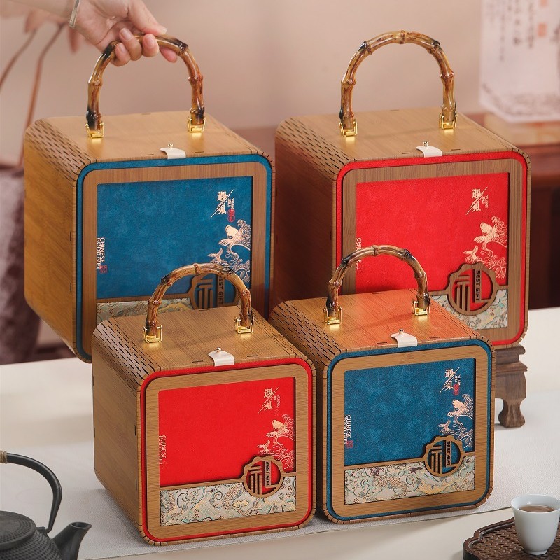 新款招财进宝创意手提竹木盒茶叶散茶包装盒