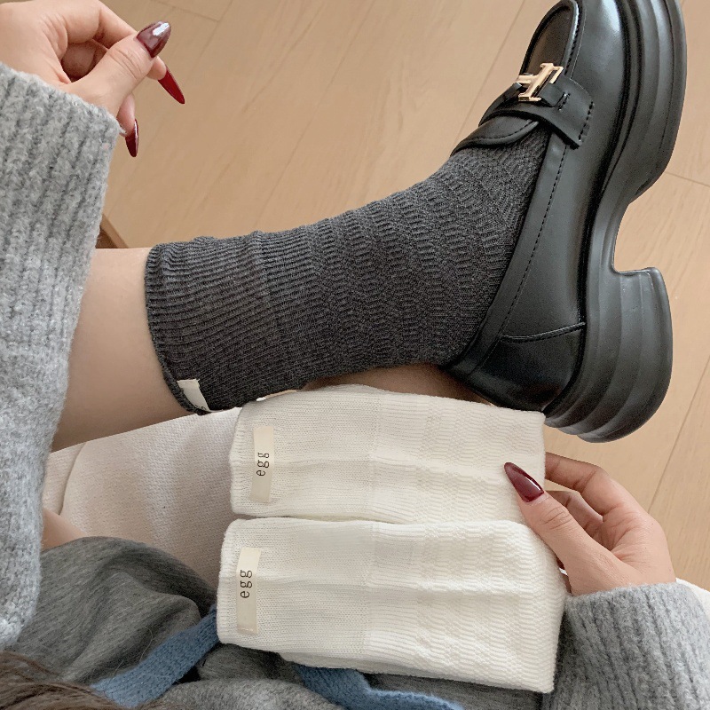 秋季新品女袜日系纯色布标egg中筒袜双针松口ins学院风无骨堆堆袜