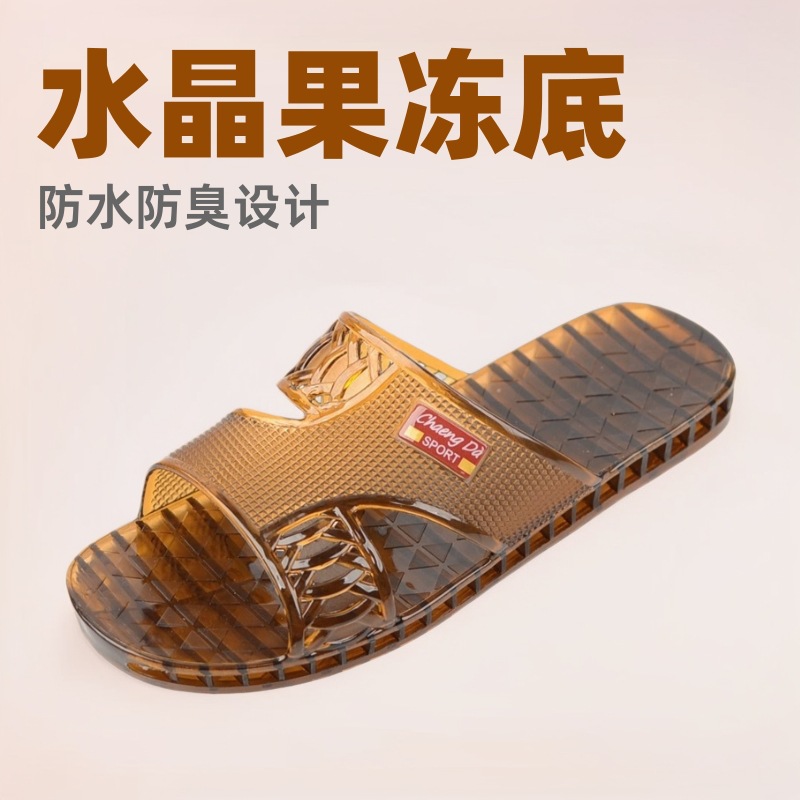水晶拖鞋男款防水防臭浴室洗澡外穿透明果冻底塑胶一字拖浴室外穿