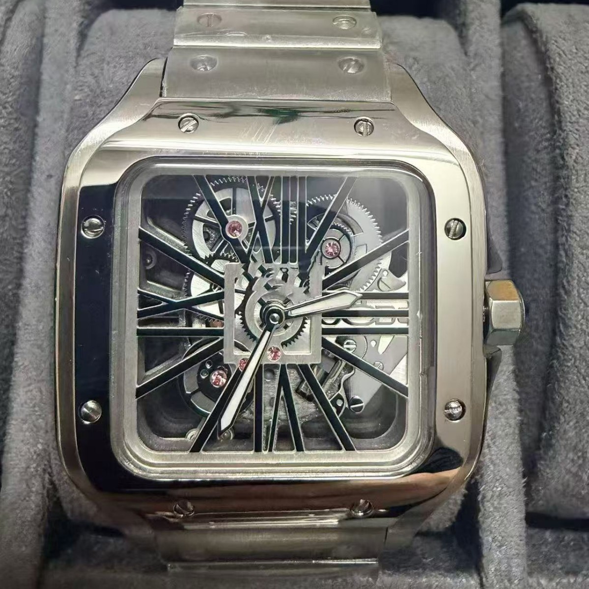 工厂货源方形表山度士手表同款罗马系列男表镂空石英316精钢表批