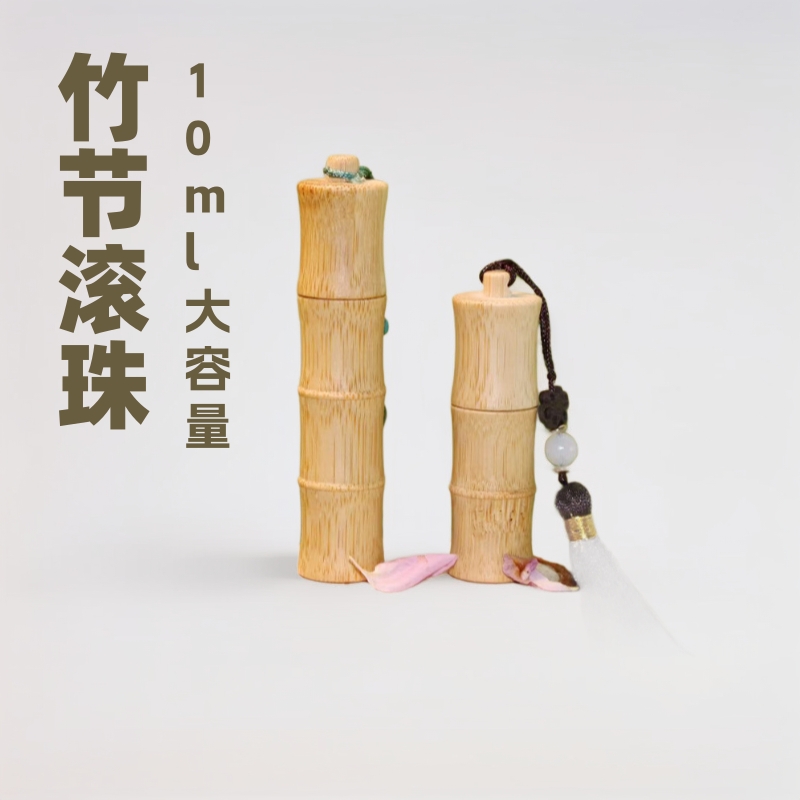 竹木圆头滚珠瓶精油开窗全包款滚珠瓶精华液生发液香水分装瓶防摔