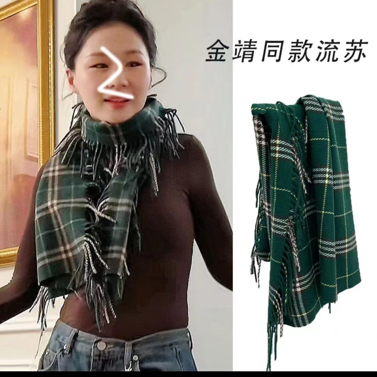 金靖同款秋冬爆款复古格子围巾女学生韩版高级感绿色披肩保暖围脖