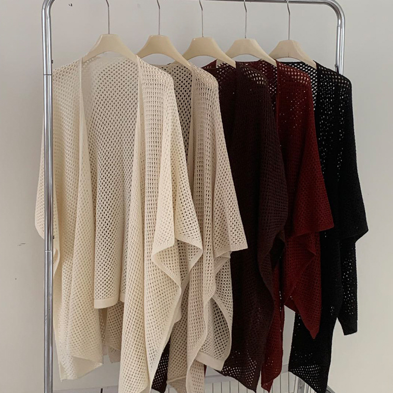 复古文艺范儿斗篷披肩女纯色镂空羊毛针织开衫围巾两用披风外搭潮