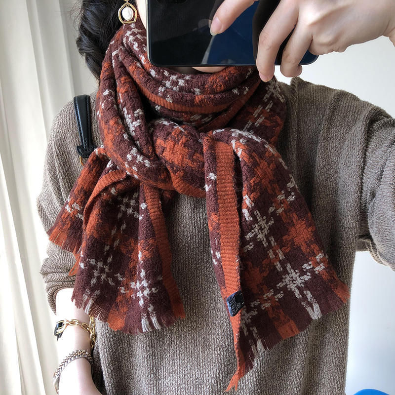 2024秋冬季新款女生小香风羊毛围巾针织提花秋冬格子披肩围脖时尚