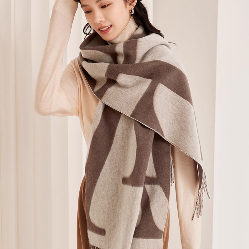 2023欧美秋冬季女百搭时尚巴格纯羊毛羊绒围巾厂家批发羊毛围巾