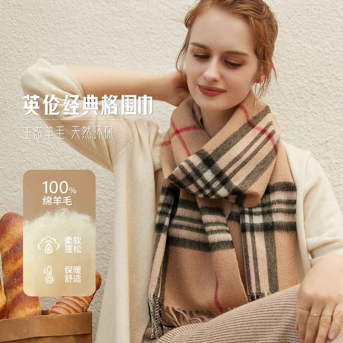 100%羊毛围巾冬天爆款女高级感男士加厚简约格子围脖女士披肩批发