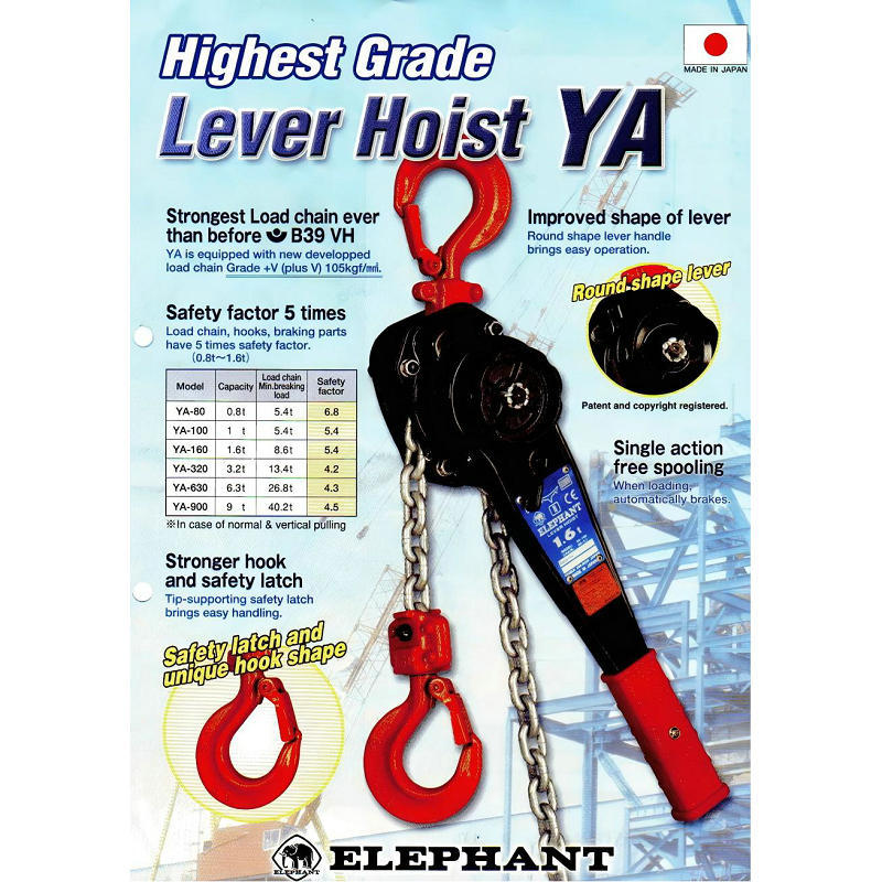 日本大象手扳葫芦原装进口杠杆式起重器工业级省力耐用提升机