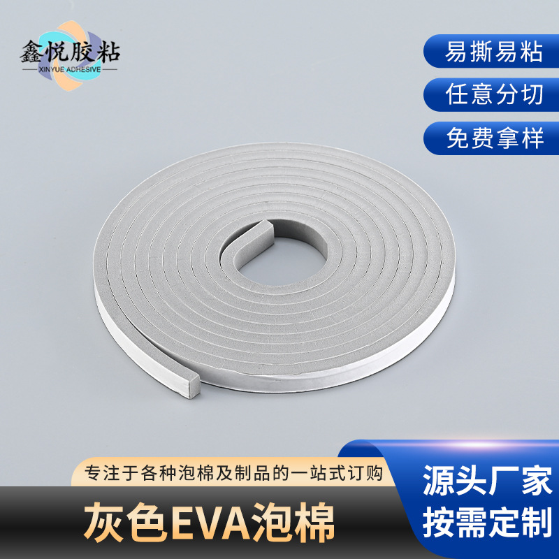 灰色EVA泡棉密封条胶带电子电器五金包装防震平衡密封条自粘胶条
