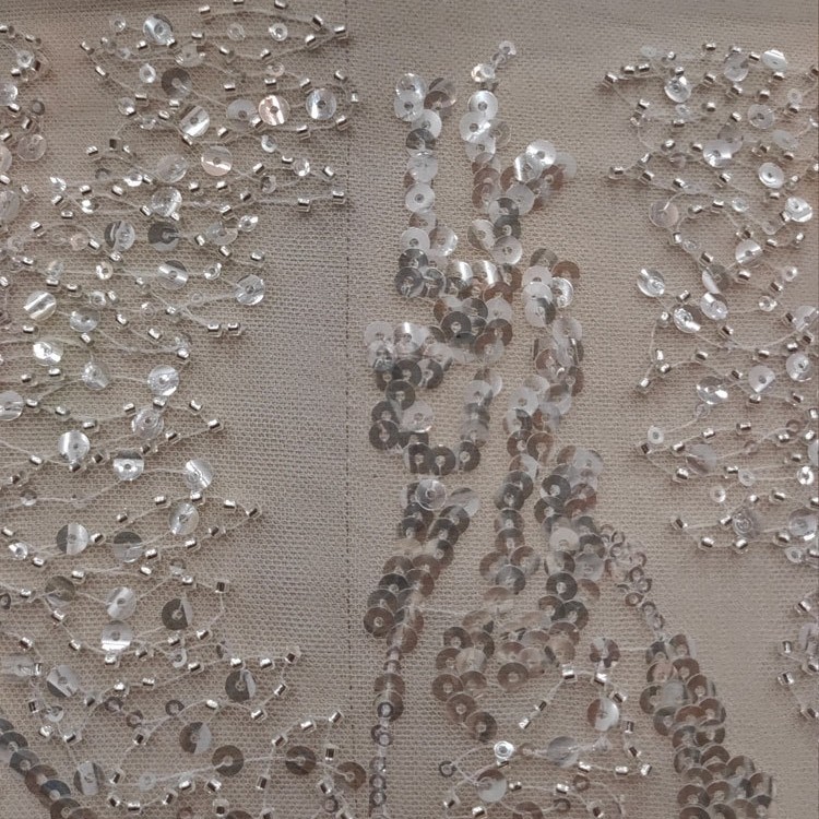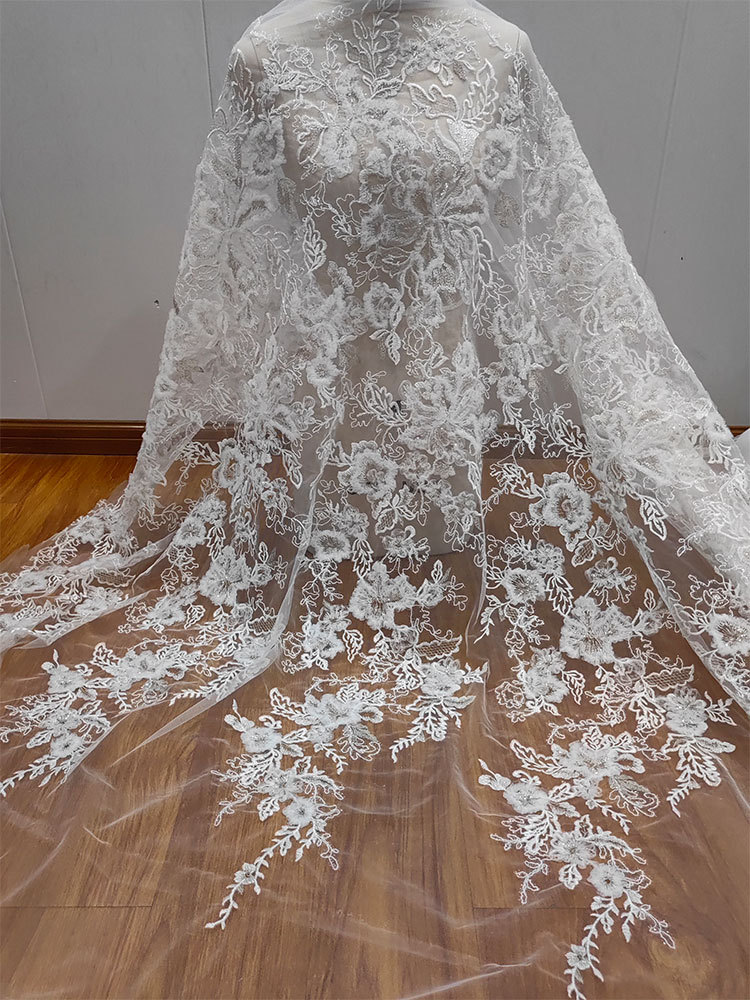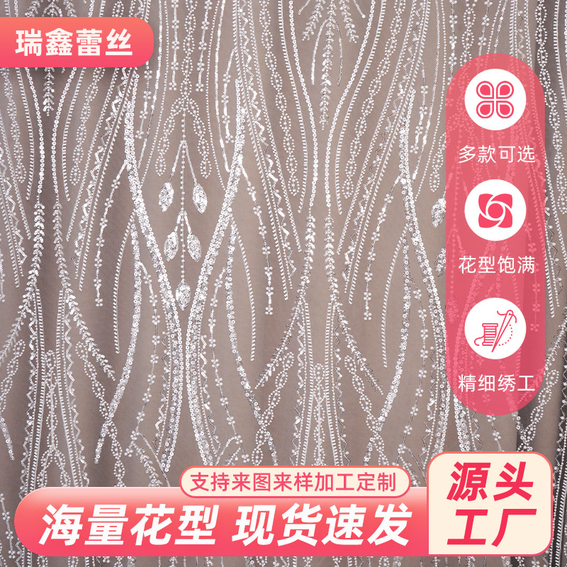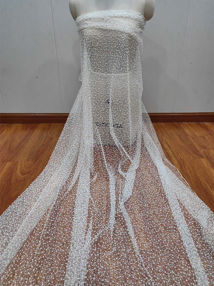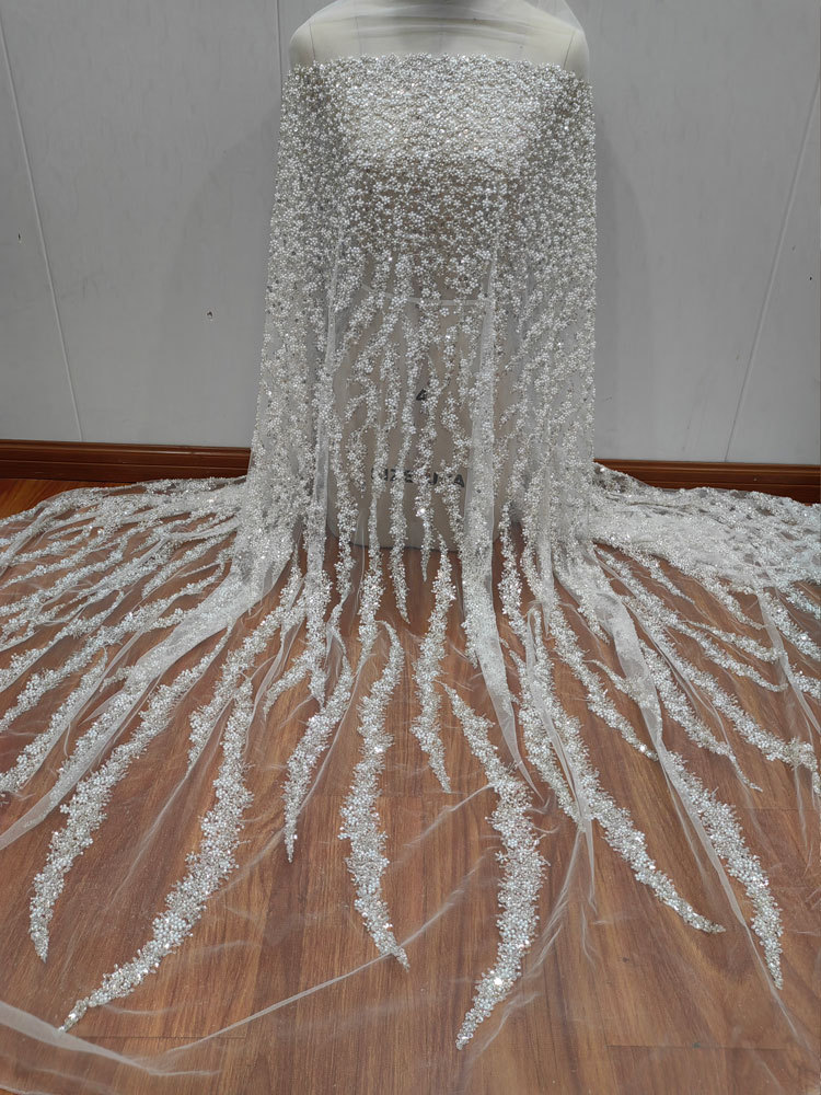 刺绣蕾丝面料厂家新款婚纱礼服演出服装辅料珍珠亮片刺绣蕾丝面料