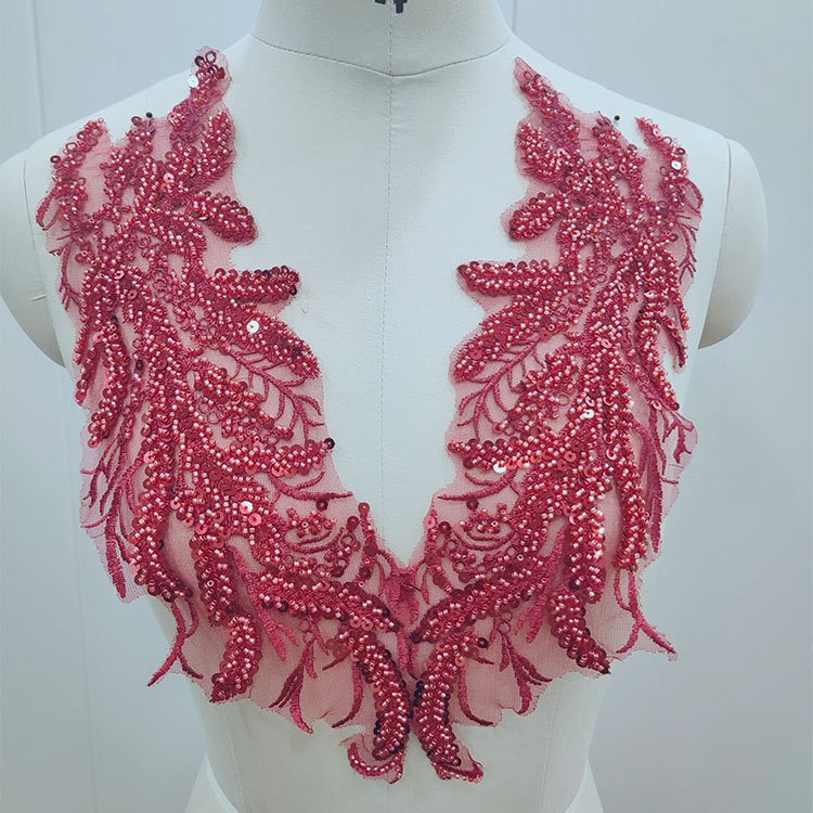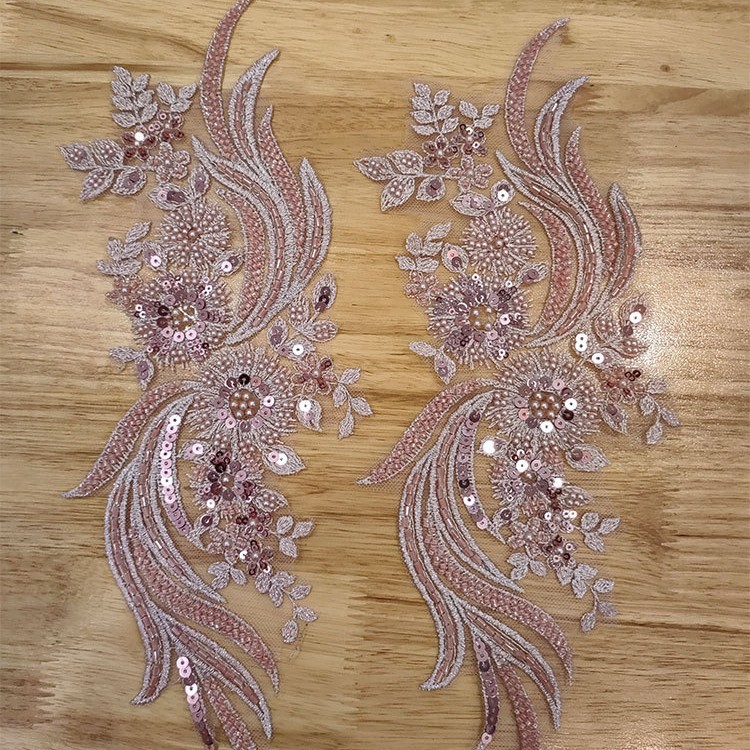多色钉珠蕾丝布料贴花婚纱礼服网纱面料花边装饰DIY服装辅料对花