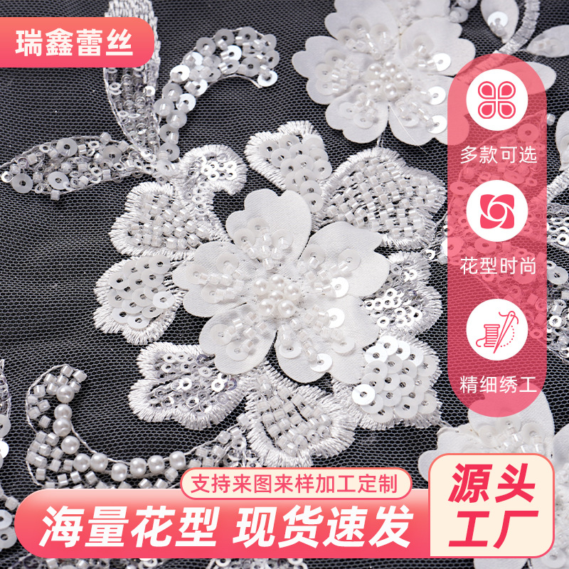 蕾丝花边辅料厂家生产新款婚纱礼服演出服装辅料花朵刺绣蕾丝面料