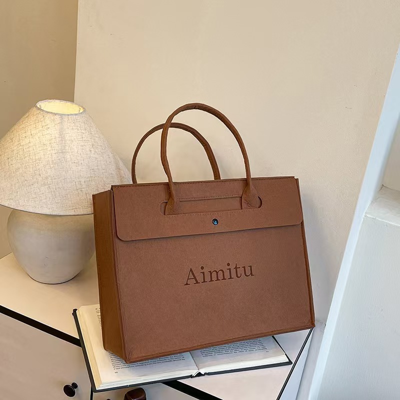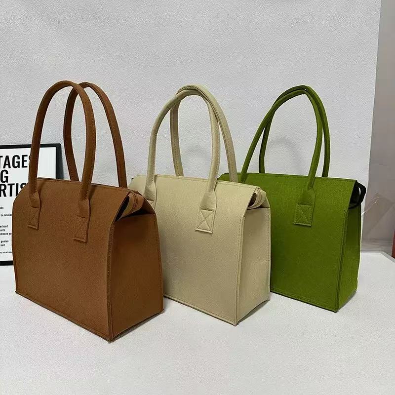 批发供应大容量手提托特包便携购物袋网红时尚简约毛毡包可印logo