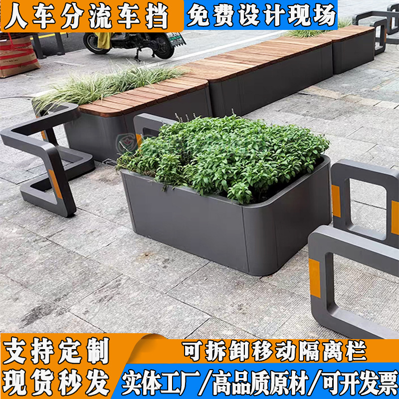 户外商业街镀锌Z型车挡 步行街隔离护栏花箱坐凳人车分流交通设施