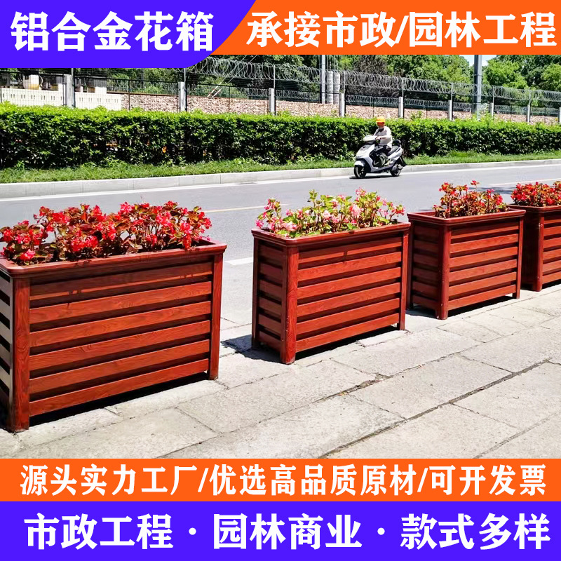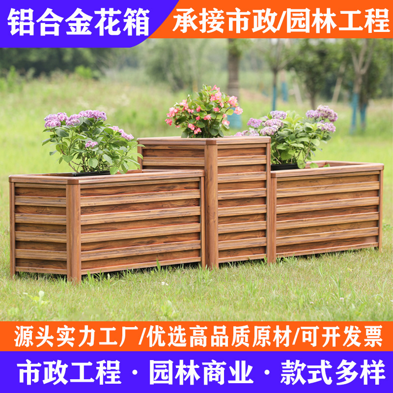 铝合金花箱市政花园户外组合江苏铝合金花箱种植箱道路庭院木纹